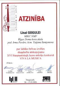 - 5. Starptautiskais konkurss “Musica Goritiensis” (Gorīcija, Itālija)