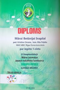 MĀRA BETĀNIJA INAPŠA – 1. vieta duetu un trio kategorijā