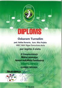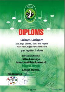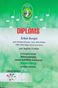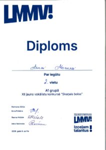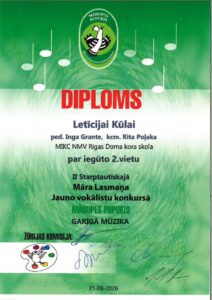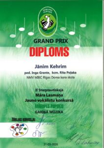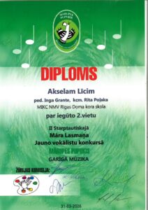 Paldies skolotājai Ancei Ķirsei un koncertmeistarei Evijai Bonātei par audzēkņu sagatavošanu konkursam!