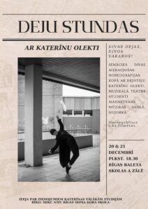 - 20. un 21. decembrī plkst. 18.30 Rīgas Baleta skolas A zālē – Deju stundas ar skolas absolventi Katerīnu Olekti