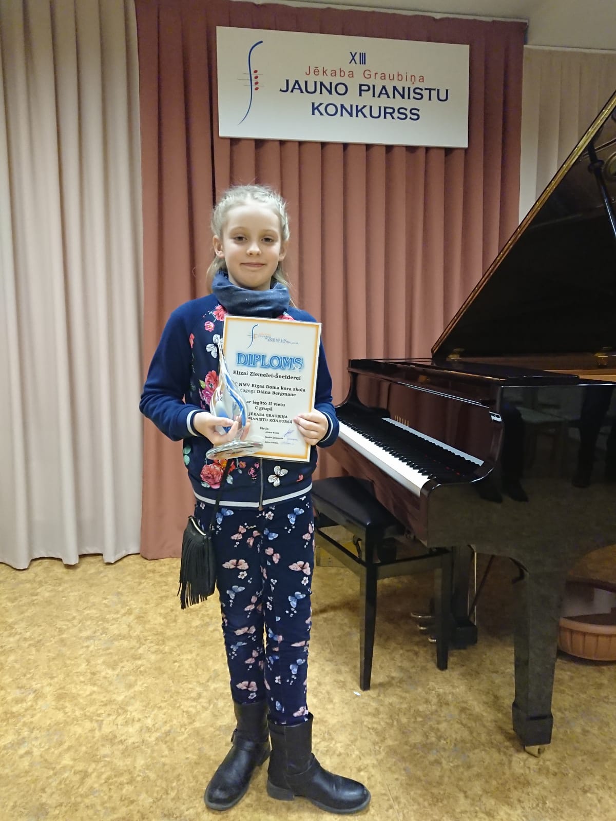 Paldies skolotājai Valdai Dzenei un koncertmeistarei Elīnai Gailei par audzēknes sagatavošanu konkursam!
