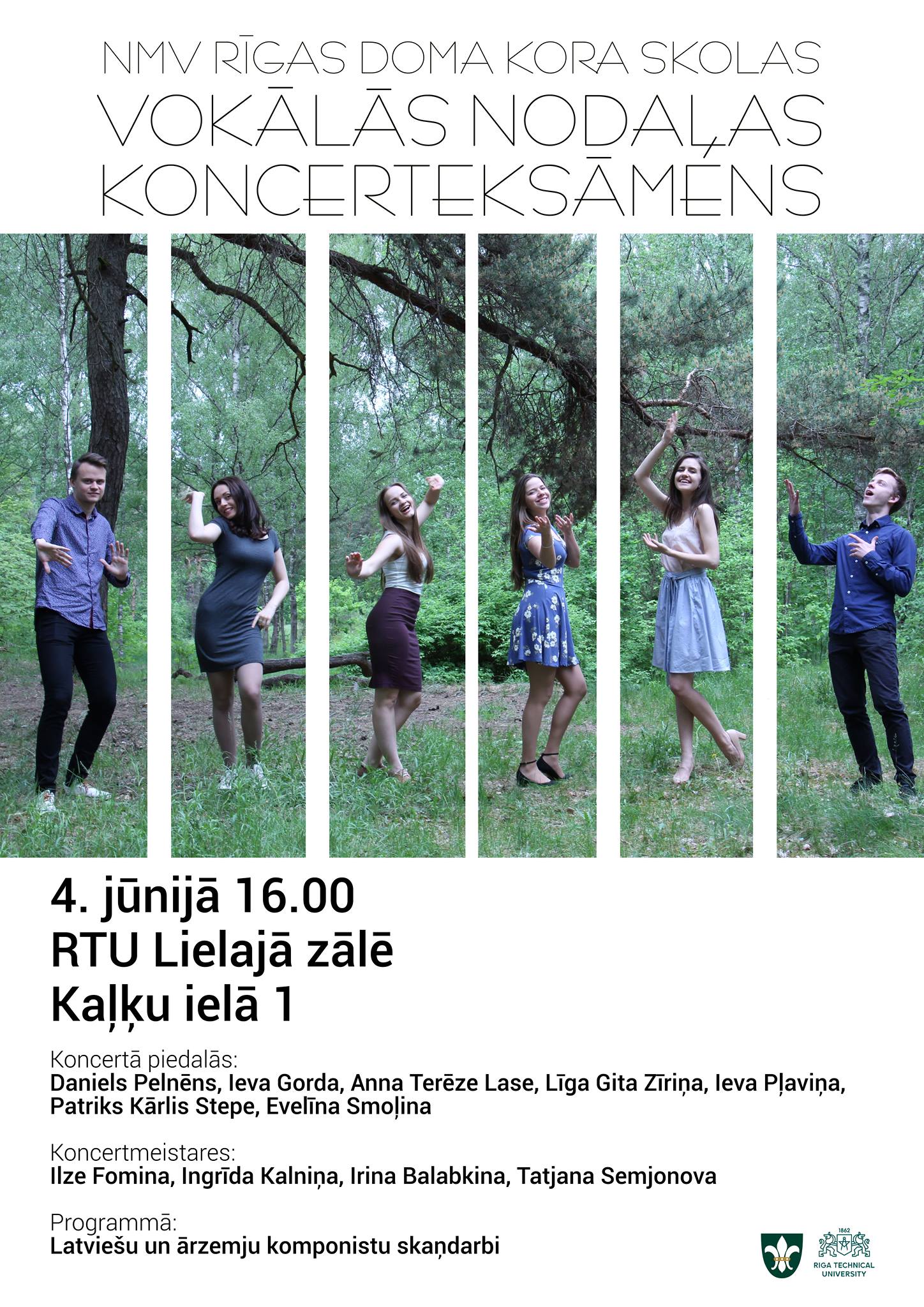 2018. gada 4. jūnijā plkst. 16.00 Rīgas Tehniskajā universitātē notiks Vokālās nodaļas IV kursa audzēkņu koncerteksāmens! Koncertā savas spējas solo un ansambļa dziedāšanā pierādīs topošie Rīgas Doma kora skolas IV kursa un vakara nodaļas absolventi, izpildot latviešu un ārzemju komponistu skaņdarbus.