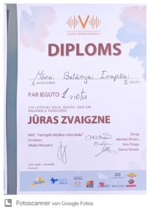 MĀRA BETĀNIJA INAPŠA – 1. vieta duetu un trio kategorijā